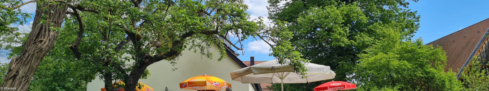 Sie sind auch herzlich eingeladen, an einem sonnigen Wochenende oder Feiertag in unseren Pfarrbiergarten zu kommen. Und mit Ihrer Spende in den Metallboxen Kupferdächlein helfen Sie dem Gemeindeleben und der Sanierung des Kirchturms.